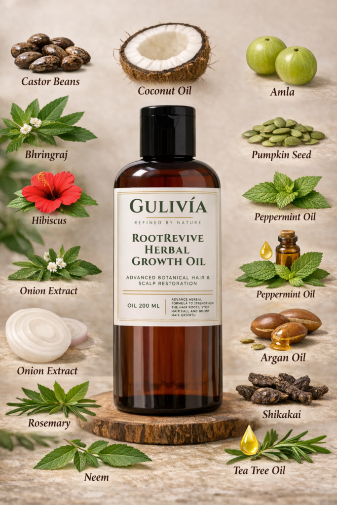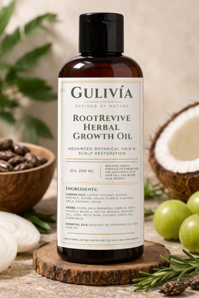 Carefully selected herbs are infused into pure oils to nourish the scalp, strengthen roots, and promote healthier, shinier, and more resilient hair naturally over time.